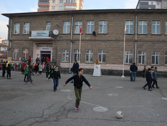 Teneffüse çıkan öğrenciler, okul bahçesinde arkadaşlarıyla oyunlar oynayarak özlem giderdi.