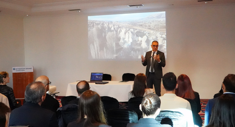 Wyndham Grand Kayseri’de Kurumsal Satış Şefi olan Selma Kara da ön büro ve satış personeli olarak gelen konukları ilk karşılayan ekip olduklarını dile getirerek, bu sebeple Kayseri ile ilgili olarak her şeyi biliyor olma durumunda olduklarını söyledi. Kara, Erciyes A.Ş. Yönetim Kurulu Başkanı Hamdi Elcuman ile KAYOTED temsilcisi Handan Esen’e ve emeği geçen tüm kurumlara teşekkürlerini iletti.