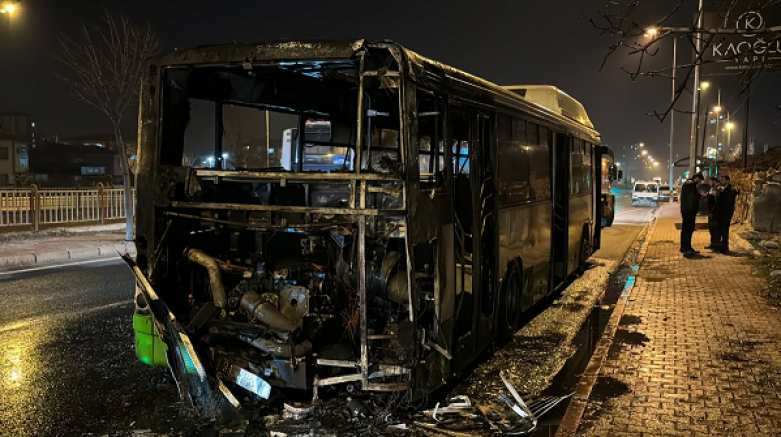 Durumu fark eden şoför, aracı yolun kenarına çekti. Bir süre sonra alev alan otobüsün, servis dışı olması nedeniyle yolcu taşımadığı öğrenildi.