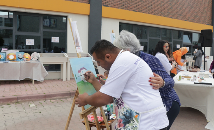 Öte yandan hazırlanan alanlarda katılımcılar ve öğrenciler resim yaptı.