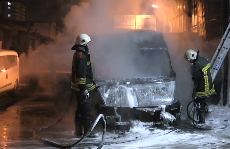 Kısa sürede aracı saran alevler, önünde park halinde bulunduğu inşaat malzemesi satan iş yerine sıçradı.