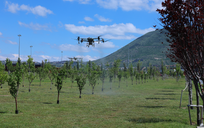 Büyükşehir Belediyesi, yeni ve gelişen teknolojiye öncülük ederek, Kayseri’nin park ve mesire alanlarında zirai insansız hava araçları olan drone ile ilaçlama yapıyor.