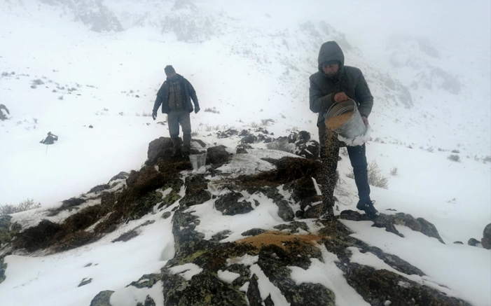 Kayseri'de Doğa Koruma ve Milli Parklar ekipleri, Yahyalı ilçesinde yaban hayvanları için yemleme çalışması yaptı.