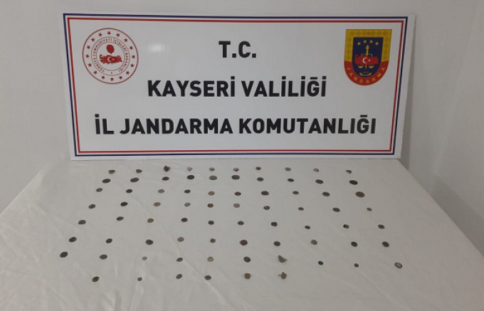 Kayseri'de Jandarma ekipleri tarafından gerçekleştirilen operasyonda tarihi eser niteliği taşıyan 76 sikke ve obje ele geçirildi.