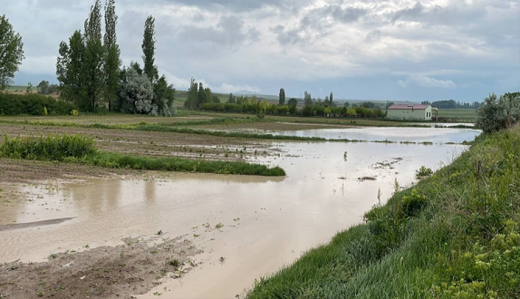 Pınarbaşı ilçesinin Pazarören ve Yeregeçen mahallelerinde de şiddetli yağış sonucu tarım arazilerini su bastı.