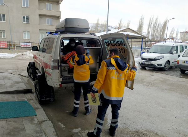 112 ekipleri, kar kalınlığının yer yer 1 metreyi aştığı mahalleye paletli ambulansla gidebildi.