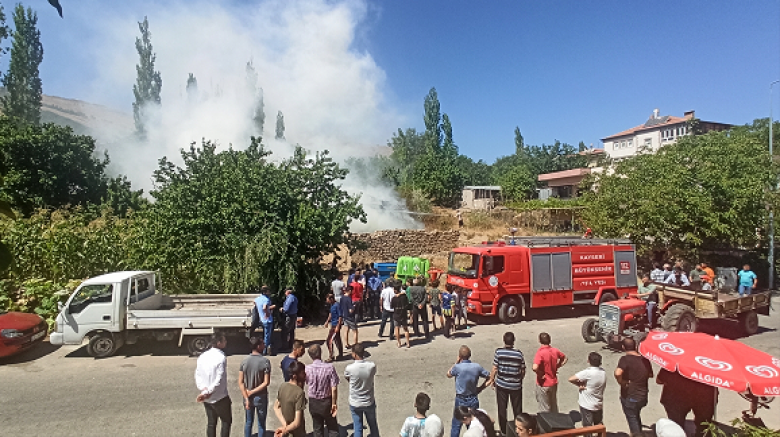 Kayseri'nin Yahyalı ilçesinde saman balyalarının bulunduğu alanda çıkan yangın itfaiye ekiplerince söndürüldü.