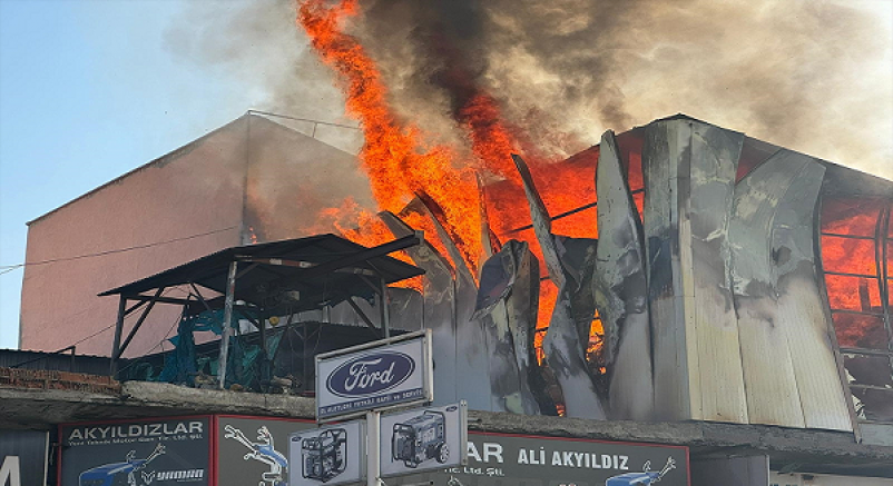 Hacı Saki Mahallesi Eski Sanayi Sitesi 6016. Sokak'ta, çapa makinesi, motorlu testere, çim biçme makinesi gibi ürünler ile yedek parçalarının satıldığı 2 katlı iş yerinin üst katında henüz belirlenemeyen nedenle yangın çıktı.