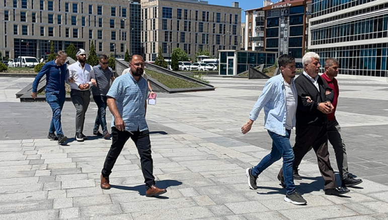 Kayseri Devlet Hastanesi'nde sağlık kontrolünden geçirilen baba ve oğlu adliyeye götürüldü.
