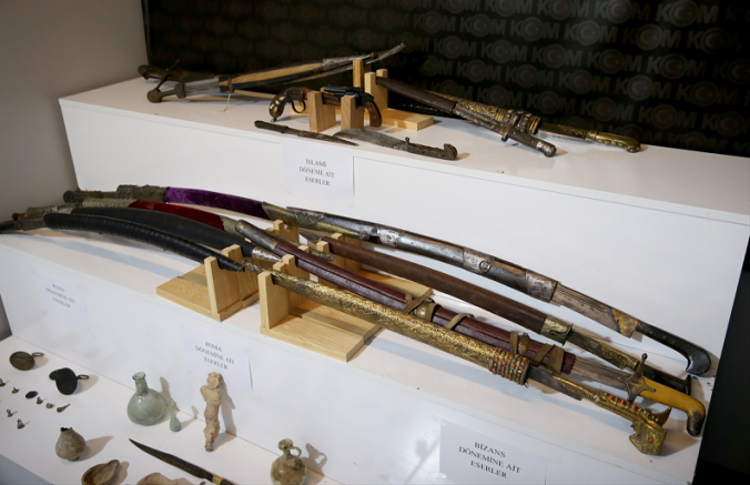 Operasyonda, Roma, Bizans ve İslamiyet dönemlerine ait olduğu değerlendirilen kılıç, kasatura, sikke, heykel ve tabanca gibi 150 obje ele geçirildi.