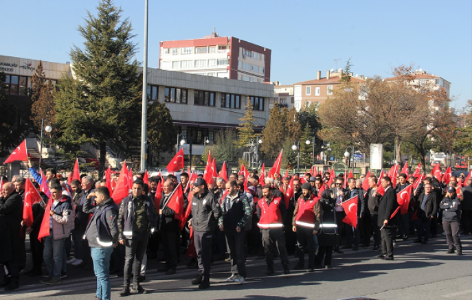 Türkiye Gaziler ve Şehit Aileleri Vakfı, Türkiye Kamu Çalışanları Vakfı ile Türkiye Kamu-Sen Konfederasyonu Kayseri şubeleri tarafından düzenlenen yürüyüş, İl Kültür ve Turizm Müdürlüğü önünden başladı.