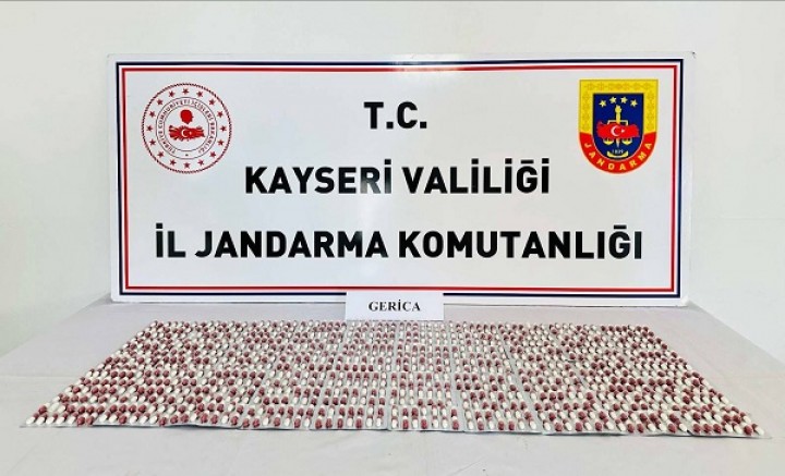Kayseri'de jandarma tarafından düzenlenen operasyonda 1008 adet GERİCA sentetik hap ele geçirildi.