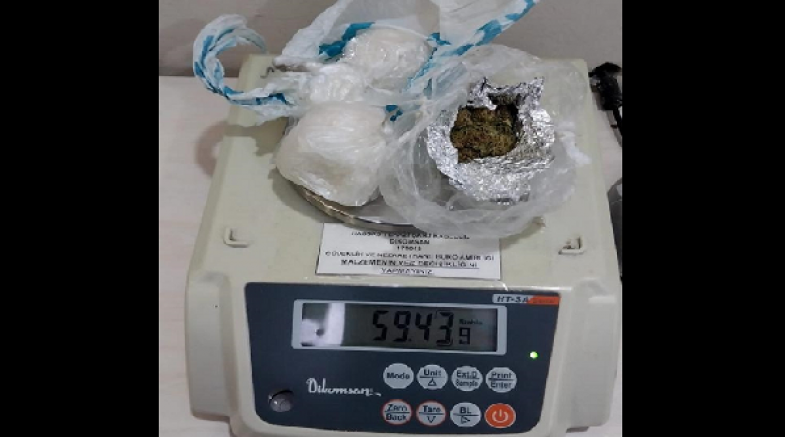 Aramada 53 gram sentetik uyuşturucu ve 6 gram esrar ele geçirildi.