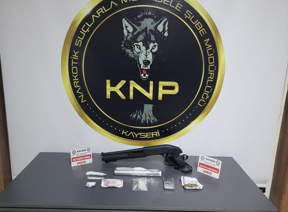 Operasyonda, 34 gram sentetik uyuşturucu, 58,18 gram esrar, 2 hassas terazi, 2 tabanca, 4 tüfek ve 10 fişek ele geçirildi.