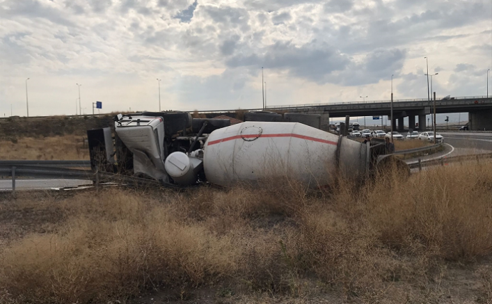 Melikgazi ilçesi Gaffar Okan Bulvarı'nda A.Y. (42) idaresindeki 31 AET 349 plakalı beton mikseri, Kayseri Güney Çevreyolu sapağında virajı alamayarak devrildi.