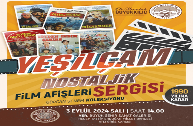 Kayseri'de 1990 yılına kadar çevrilmiş olan nostaljik Yeşilçam Filmlerinden seçilen 150 adet orijinal film afişi 3 Eylül 2024 tarihinde sanatseverlerin ilgisine sunulacak.