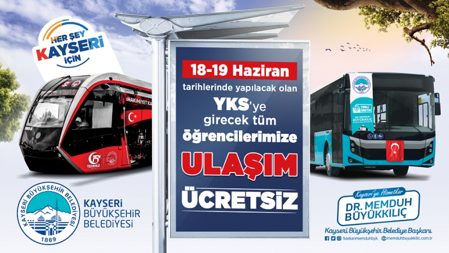 Büyükşehir Belediye Başkanı Memduh Büyükkılıç, yazılı açıklamasında, 18-19 Haziran'da üç oturumda düzenlenecek sınava girecek öğrenciler için toplu ulaşımının ücretsiz olacağını kaydetti.