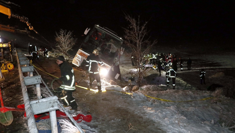Kayseri'nin Pınarbaşı ilçesinde yolcu otobüsünün şarampole devrilmesi sonucu 4 kişi hayatını kaybetti, 24 kişi yaralandı.