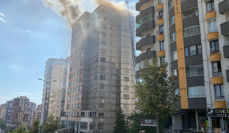 Mevlana Mahallesi Hoca Ahmet Yesevi Caddesi Gözde Sokak'ta bulunan 13 katlı bir binanın dış cephe yalıtımı tadilat çalışması sırasında çatı bölümünde henüz bilinmeyen nedenle yangın çıktı.