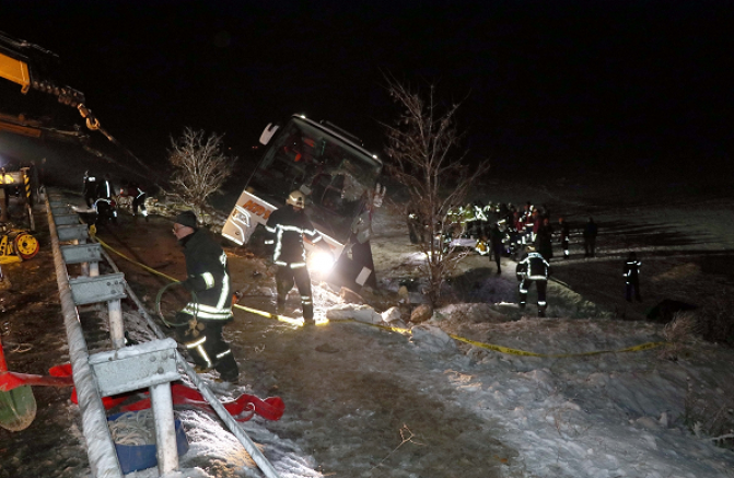 Malatya-İstanbul seferini yapan Kayısı Kent Turizm'e ait, M.K. yönetimindeki 44 NK 222 plakalı yolcu otobüsü, dün Kayseri-Malatya kara yolunun 60. kilometresindeki Esenköy mevkisinde şarampole devrilmişti. Kazada 4 kişi ölmüş, 24 kişi yaralanmıştı.