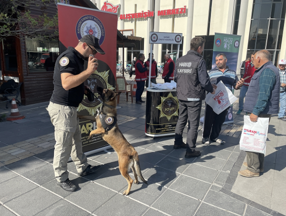 Kayseri Emniyet Müdürlüğü Narkotik Suçlarla Mücadele Şubesi ekiplerince vatandaşlara bağımlılıkla ilgili uyarıcı bilgiler içeren broşür dağıtıldı.