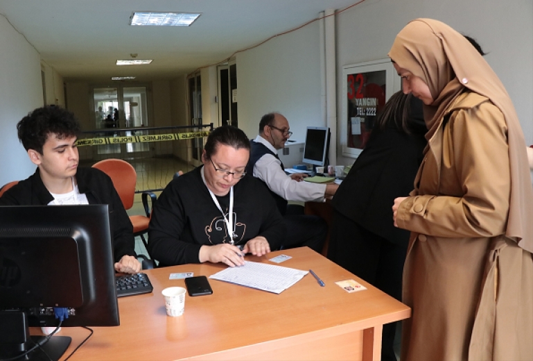 Kayseri Havalimanı'nda, Cumhurbaşkanı ve 28. Dönem Milletvekili Genel Seçimleri kapsamında, yurt dışı seçmen kütüğüne kayıtlı vatandaşların oy verme işlemi başladı.