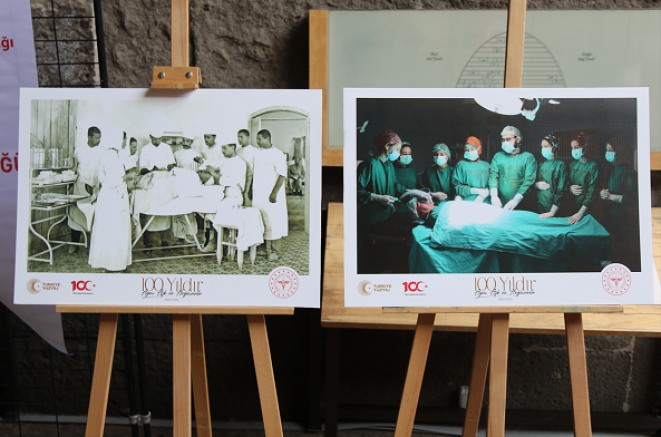 Cumhuriyet'in 100. yılı etkinlikleri kapsamında Selçuklu Uygarlığı Müzesi ile Kayseri Şehir Hastanesi yetişkin acil girişinde açılan sergide, Cumhuriyet'in ilk yıllarında hizmet veren sağlık çalışanlarına ve sağlık hizmetlerine ait fotoğraflar yer alıyor.