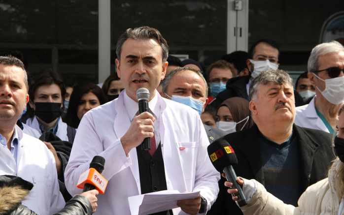 Oda başkanı Doç. Dr. Mehmet İlhan Şahin, Erciyes Üniversitesi Hastaneleri Başhekimlik girişinde, akademisyen, uzman, asistan, intern ve stajyer doktorların katılımıyla yaptığı basın açıklamasında, genç hekimlerin sorunlarını ve taleplerini dile getirdi.