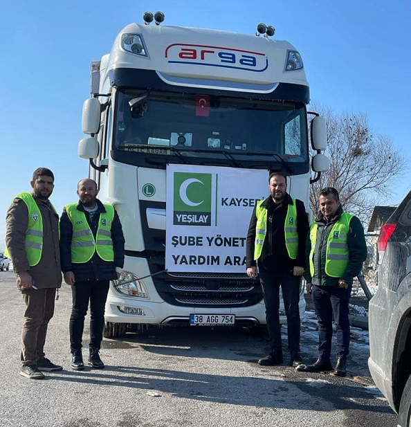 Merkez üssü Kahramanmaraş olan ve şehrimizde de hissedilen 7,7 ve 7,6 şiddetindeki depremlerin ardından Yeşilay Kayseri Şubesi ilk saatlerden itibaren deprem bölesi için yardım çalışmalarını sürdürüyor. Yeşilay Kayseri Şube Başkanı Mehmet Çifçi, şimdiye kadar 2 tır yardım malzemesini Kayseri şubemiz olarak hayırseverlerimizin emanetlerini deprem bölgesine ulaştırdık dedi.  Yardımları başta Kayseri Valiliği, Büyükşehir Belediyesi, AFAD, ve Kızılay ile koordineli bir şekilde yürüttüklerini hatırlatan Çifçi, özellikle Yeşilay Kayseri Şubesinde oluşturdukları toplama merkezinden kuru gıda, elektrikli ısıtıcı, tüp, soba, çocuklar için gerekli mont, pantolon, çocuk bezi, uyku tulumu, yatak gibi bir çok malzemenin sorunsuz bir şekilde yardım bölgelerine ulaştırıldığını söyledi.
