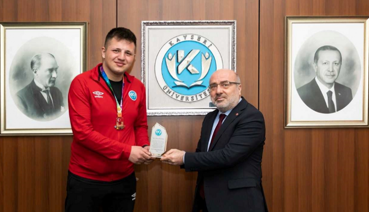 KAYÜ Rektörü Prof. Dr. Kurtuluş Karamustafa, Üniversiteler Boks Ünilig Türkiye Şampiyonası’nda başarılı olan Kılnamaz’ı başarısından dolayı kutladı ve plaket takdim etti.