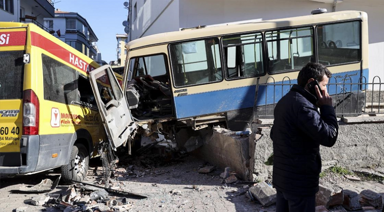 Sürücü, freninin boşaldığı tahmin edilen dolmuşu durdurmak için 1774. Cadde'de yol kenarındaki ATM'lere doğru direksiyonu kırdı. ATM'leri deviren araç, park halindeki hasta servisine çarparak durdu.