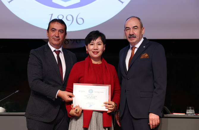 Toplantıya katılan Çinli iş insanı fabrikatör, Liang Jieshan’a da fahri üyelik belgesi takdim edildi.
