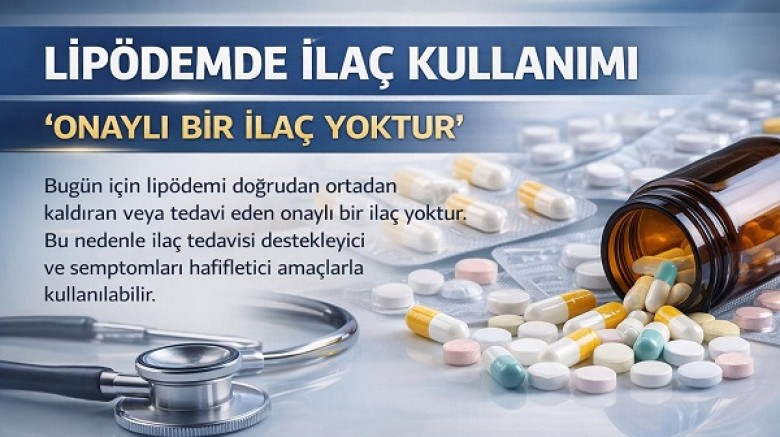 "Bugün için lipödemi doğrudan ortadan kaldıran veya tedavi eden onaylı bir ilaç yoktur. Bu nedenle ilaç tedavisi destekleyici ve semptomları hafifletici amaçlarla kullanılabilir."