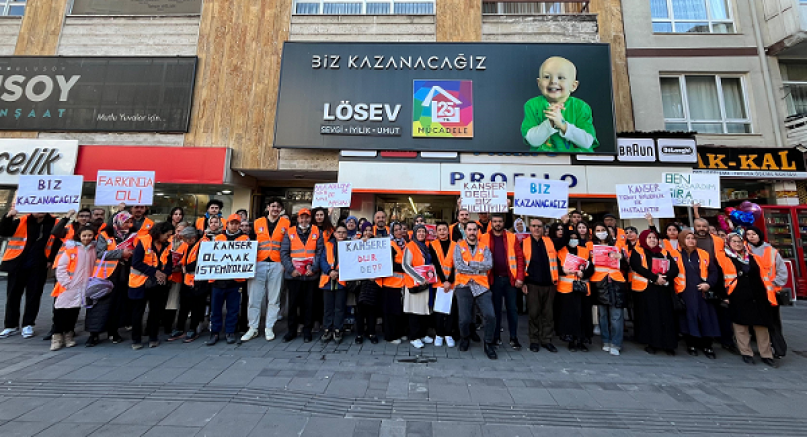 Lösemi ve kanser ile mücadele eden çocuklar ve yetişkin hastalar için çalışan LÖSEV, toplumda farkındalık yaratmayı ve kanserle mücadelede destek sağlamayı sürdürüyor. Kurum yetkilileri, Türkiye genelinde gönüllülerin ve kanser ile mücadele eden ailelerin de katılımı ile aktivist çalışmaya imza attı. Gönüllüler ve kanser ile mücadele edenler “Kanser Olmak İstemiyoruz, Kanser’e Dur De!, Kanser Değil Biz Güçlüyüz” yazılı pankartlar taşıyarak farkındalık yaratmayı hedefledi. LÖSEV yetkilileri çalışmada okunan bildiride: “Ülkemizde her yıl 200 bin yeni kanser vakası görüyoruz. Soruyoruz, nasıl ve neden kanser ediliyoruz! Sizler de bu toplumsal sorumluluk ve dayanışma hareketinde LÖSEV ailemize katılın. Kanserle ve bizi kanser eden şeylerle hep birlikte mücadele edelim. Her birimiz birer kanser savaşçısı olalım. Artık tek bir çocuğumuzu lösemi ve kanserden kaybetmeyelim. Sevgi, İyilik ve Umut dolu bu mücadeleyi biz kazanalım.” İfadeleri ile topluma çağrıda bulundu.