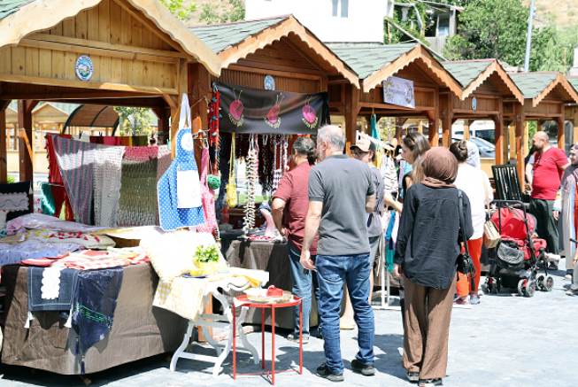 Ev hanımları tarafından hazırlanan birbirinden değerli el emeği işlerin sergilendiği pazarda el işi tekstil ürünlerinden kışlık yiyeceklere, ev yemeklerinden süs eşyalarına kadar pek çok ürün, satışa sunuluyor.