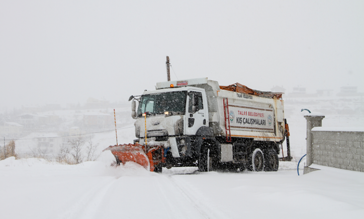Başta ilçenin yüksek kesimlerindeki kırsal mahalleler olmak üzere Talas’ın tüm yollarında kar temizleme ve tuzlama çalışması yapan ekipler, ulaşımının aksamaması için aralıksız olarak faaliyetlerine devam ediyor.