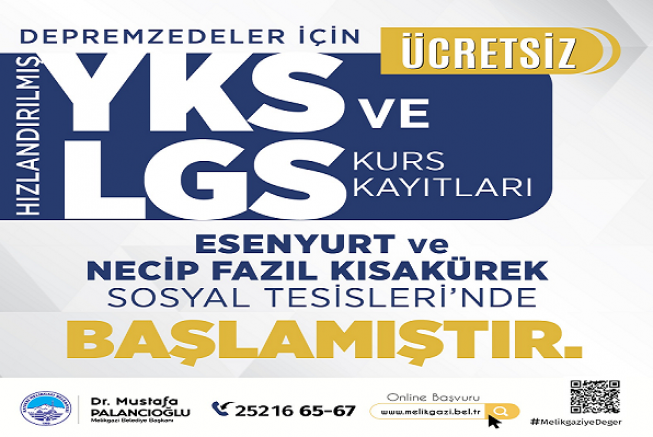Melikgazi Belediyesi, Kayseri'ye gelen depremzede öğrencilere ücretsiz hızlandırılmış Liselere Geçiş Sistemi (LGS) Sınavı ve Yükseköğretim Kurumları Sınavı (YKS) hazırlık kursları düzenliyor.