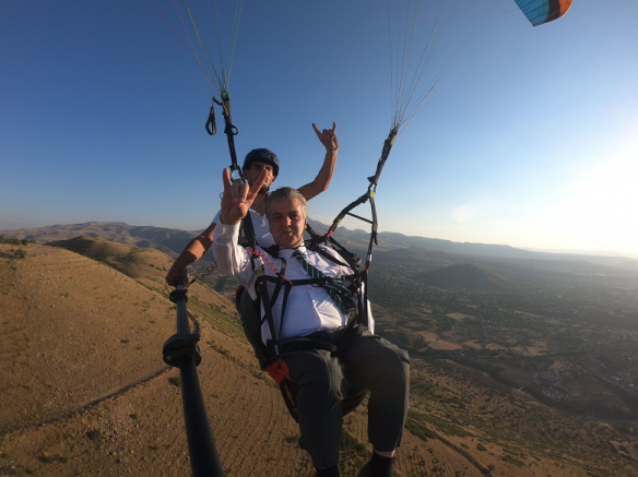 Kayseri Valisi Gökmen Çiçek ve İl Jandarma Komutanı Yüksel Yiğit’in ardından MHP İl Başkanı Adnan İncetoprak’da turizme destek vermek için yamaç paraşütü ile uçtu.