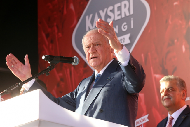 Bahçeli, partisince Cumhuriyet Meydanı'nda düzenlenen "2023'e Doğru: Aday Belli, Karar Net" başlıklı mitingde yaptığı konuşmada, Kayserilileri selamlayarak, Kayseri'nin "yine düşman çatlattığını" söyledi.