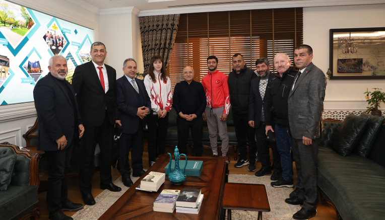 98 ülke sporcularının katılımıyla Tayland’da gerçekleşen Dünya Muay Thai Şampiyonası’nda 2. olarak dereceye giren sporcular Sercan Koç ve Ezgi Keleş yanı sıra Muay Thai Federasyonu Asbaşkanı Halil Demir, Milli Takımlar Sportif Direktörü ve Antrenör Göksel Cingöz ve İl Temsilcisi Fatih Kağan Ulu, Başkan Yalçın’a teşekkür ziyareti gerçekleştirdi.