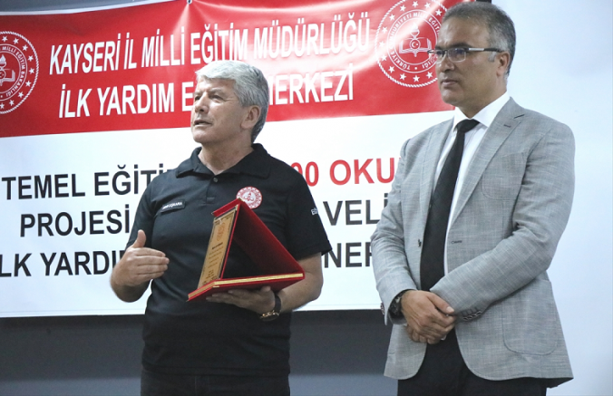 Milli Eğitim Bakanlığının "Temel Eğitimde 10 Bin Okul Projesi" kapsamında Ahmet Baldöktü İlkokulunda düzenlenen ilk yardım eğitimi programında Eşkara'ya plaket takdim edildi.
