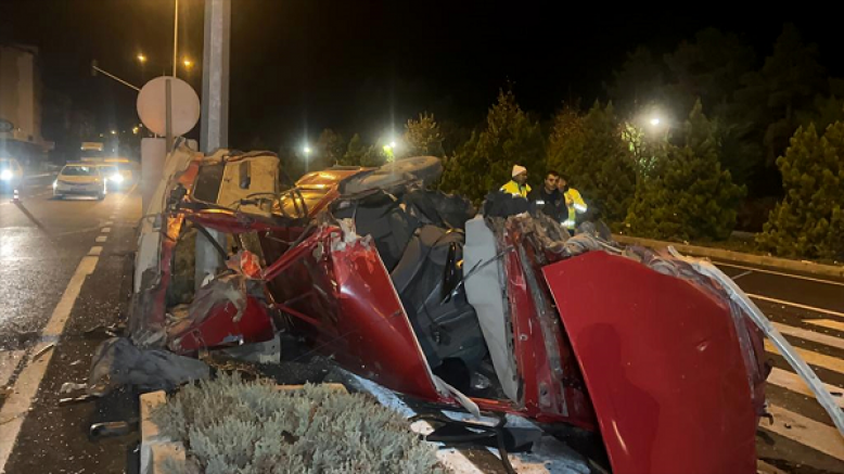 Nevşehir'de refüje çarparak devrilen otomobildeki 2 kişi yaralandı.