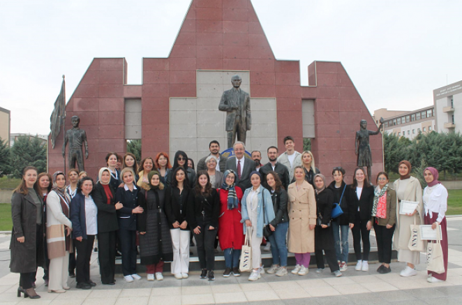NNYÜ tören alanında düzenlenen etkinlikte, Rektör Prof. Dr. Ahmet Fazıl Özsoylu ve NNYÜ Sağlık Bilimleri Fakültesi Hemşirelik Bölüm Başkanı Doç. Dr. Zeliha Kaya Erten, Atatürk Anıtı'na çelenk sundu.