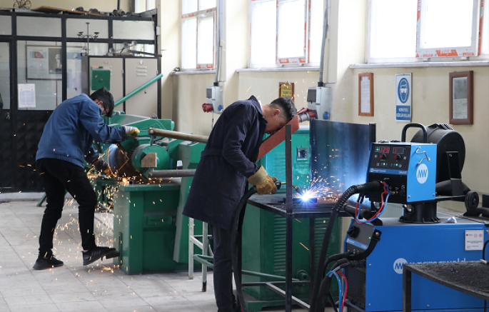 Atölyelerde başta kaynakçılık olmak üzere verilen eğitimlerle öğrenciler, istihdam protokolleri yapılan firmalarda çalışma imkanı bulacak.