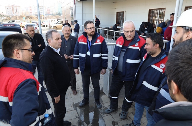 Erciyes Üniversitesi (ERÜ) Rektörü Prof. Dr. Fatih Altun, Kahramanmaraş'ın Afşin ilçesinde hasar tespit çalışması yapan Mühendislik Fakültesi öğretim üyelerini ziyaret etti.