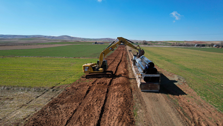 Boru montajlarının devam ettiği projede % 41 fiziki gerçekleşme oranı sağlanırken DSİ Genel Müdürü Mehmet Akif BALTA, projeyi bitirmek için adeta zamanla yarıştıklarını ve 2025 yılının ikinci yarısında projeyi tamamlamayı hedeflediklerini açıkladı.