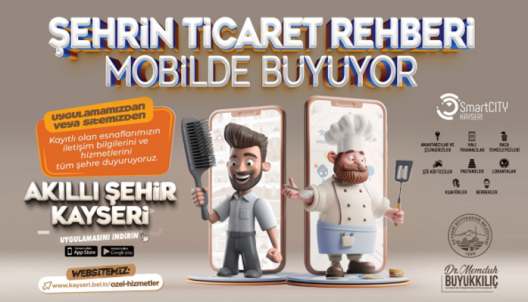 Büyükşehir, bu proje ile cep telefonlarından indirilen ‘Akıllı Şehir Kayseri’ uygulamasından veya https://www.kayseri.bel.tr/ozel-hizmetler web sitesi adresinden, kayıtlı olan esnafların iletişim bilgilerini ve hizmetlerini tüm şehre duyuruyor.