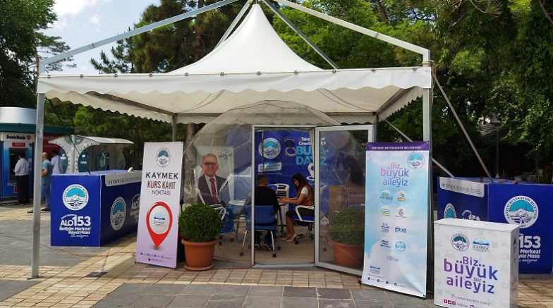 Şimdi de halkın yoğunluğunun çok olduğu ve en rahat ulaşılabilecek konumda kurulan İletişim Küresi’nde, KAYMEK Huzur Çınarı Aile Danışmanlık ve Rehberlik Merkezi tarafından vatandaşların hayatında yer edinerek, manevi destek sağlamak amacıyla hayata geçirilen ‘Sırdaşın Olayım Projesi’ tanıtım standı kuruldu.