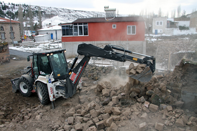 Talas Belediyesi, ilçe merkeziyle birlikte kırsalda da görüntü kirliliğine neden olan metruk binaların yıkımına devam ediyor.