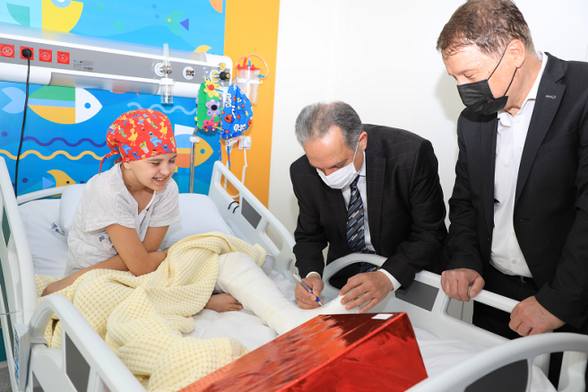Burada ilk olarak Hastane Başhekimi Prof. Dr. Musa Karakürkçü ve Erciyes Üniversitesi Tıp Fakültesi Hastaneleri Başhekimi Prof. Dr. Haluk Kutay Taşdemir ile görüşen Başkan Yalçın, doktorlarla birlikte tedavi gören çocukları ziyaret etti.